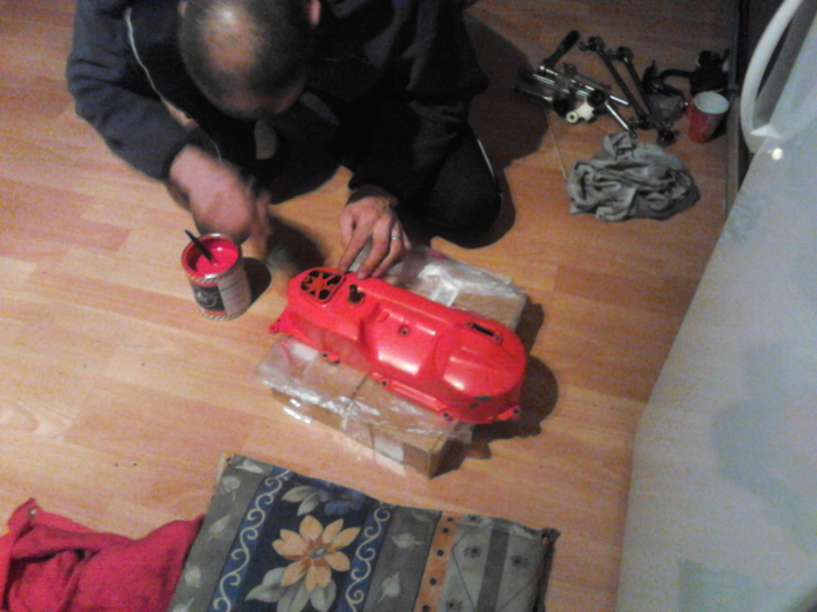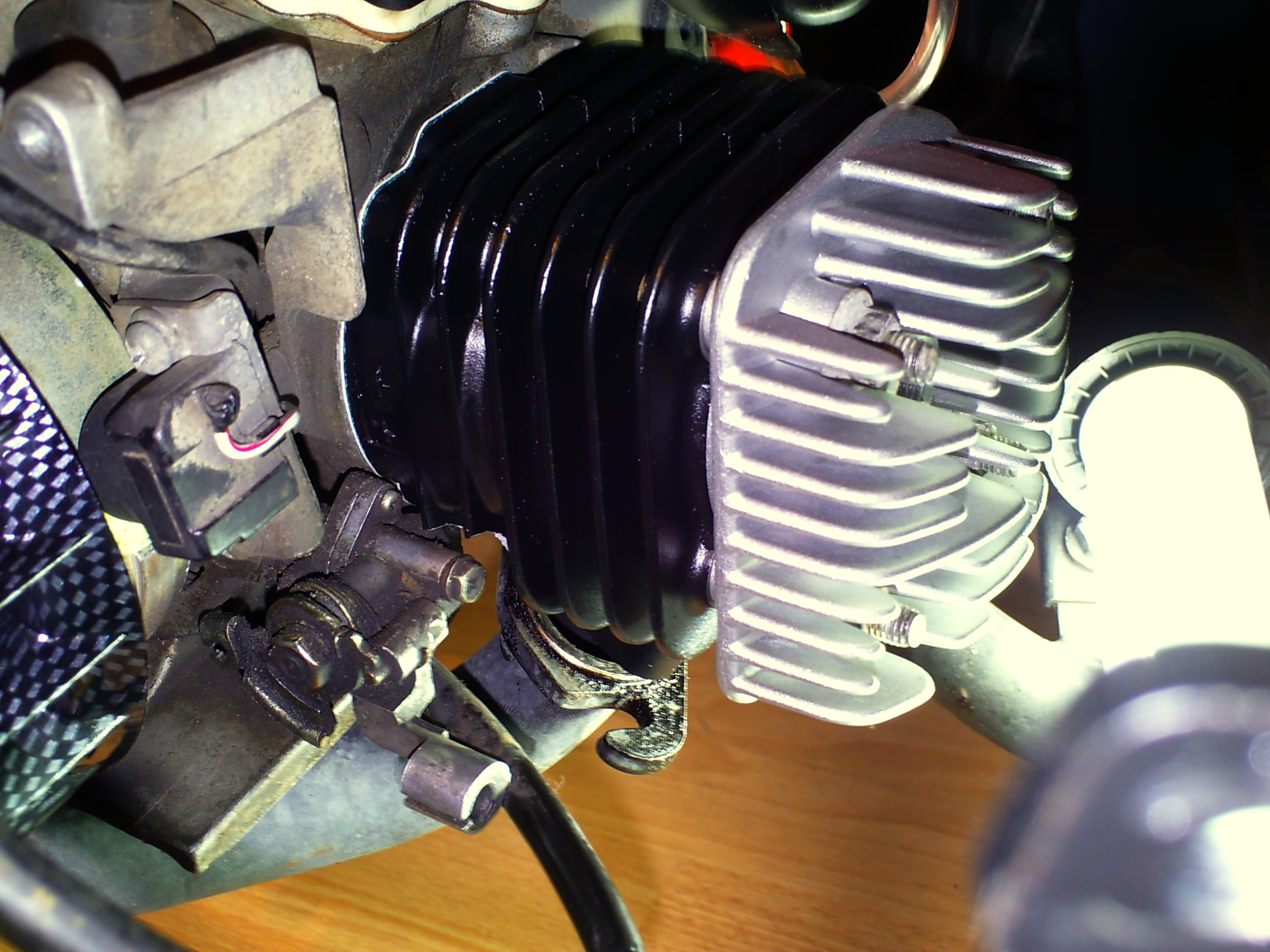 en we konden het natuurlijk niet laten om de cilinder en de kop mooi zwart te spuiten