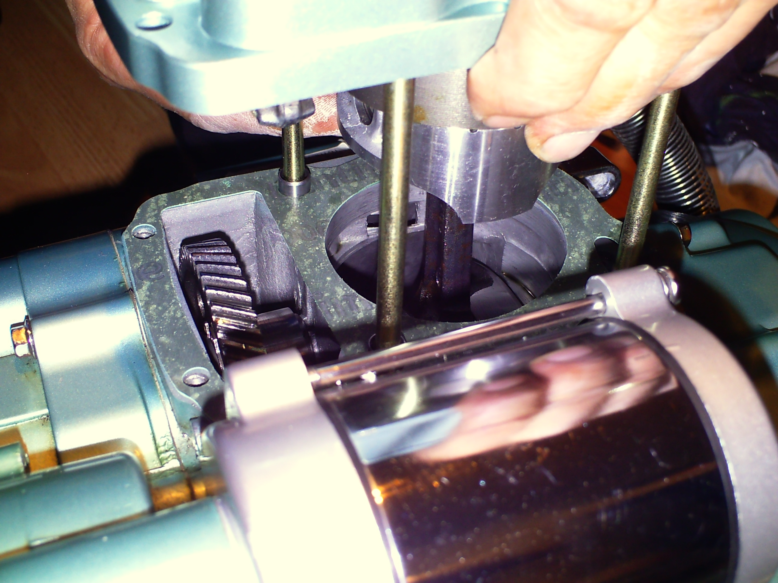zorg dat je een doek in het gat doet waar de krukas zit zodat er niks in je blok kan vallen