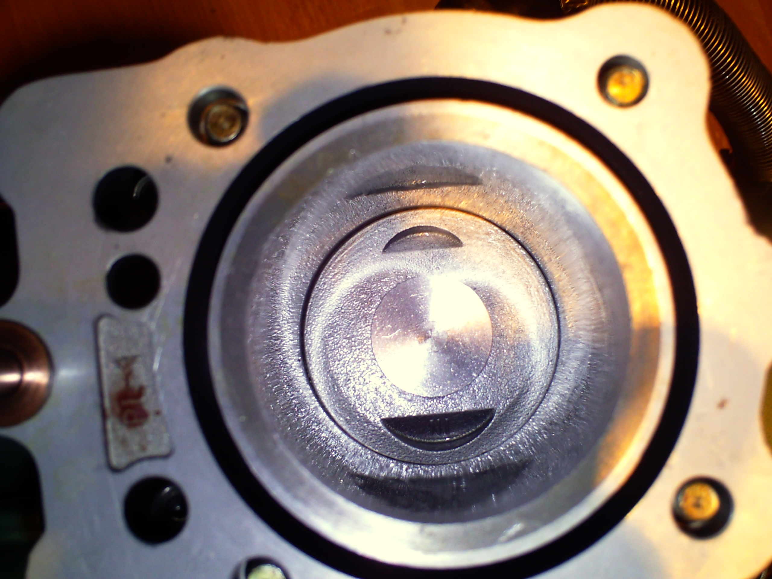 de zuiger plaats je met IN naar de inlaatkant dus de kant van de carburateur en startmotor en zorg dat de je de borgveerjes van de zuiger met de opening naar onder of naar boven zet i.v.m. het losraken