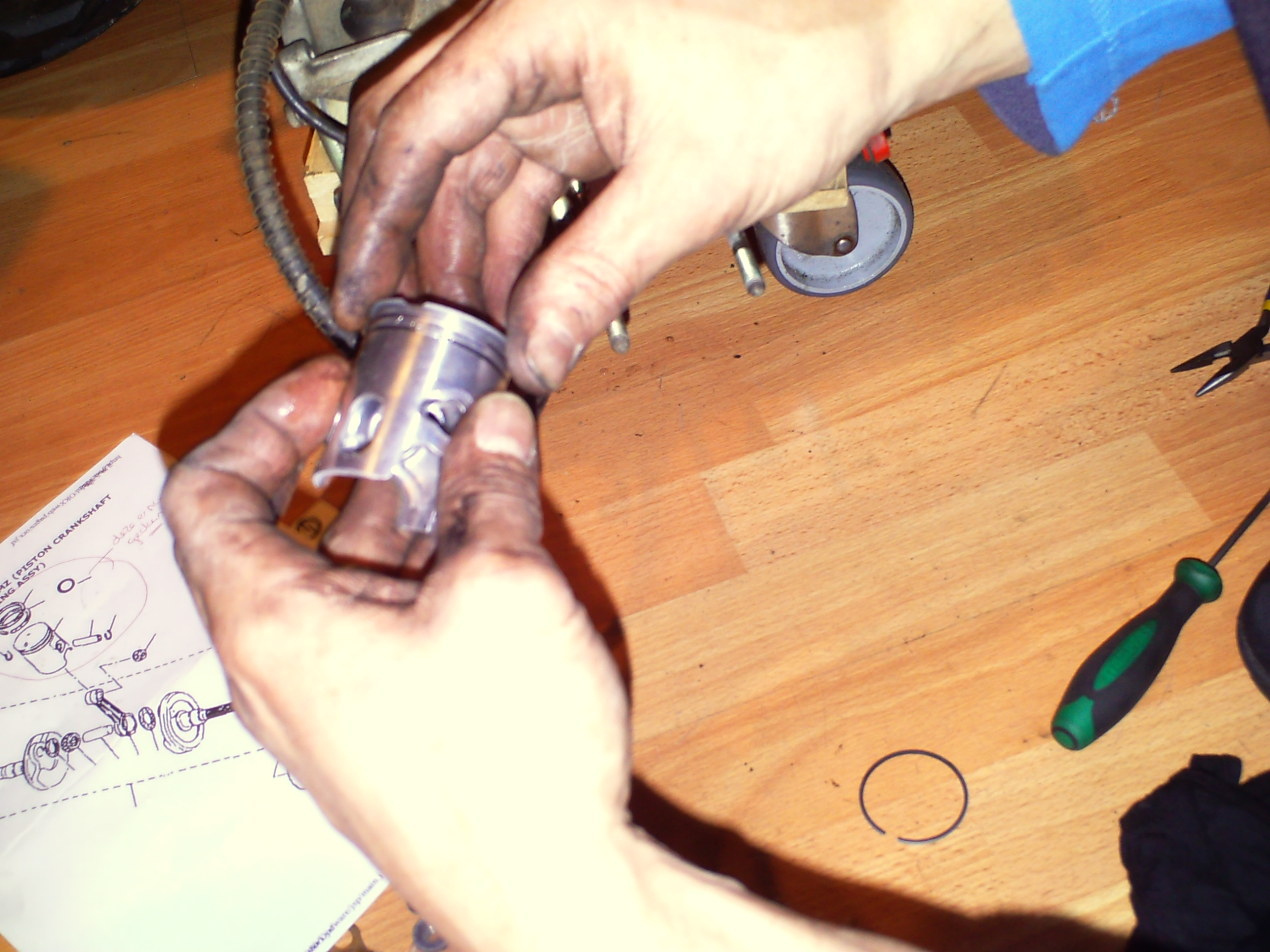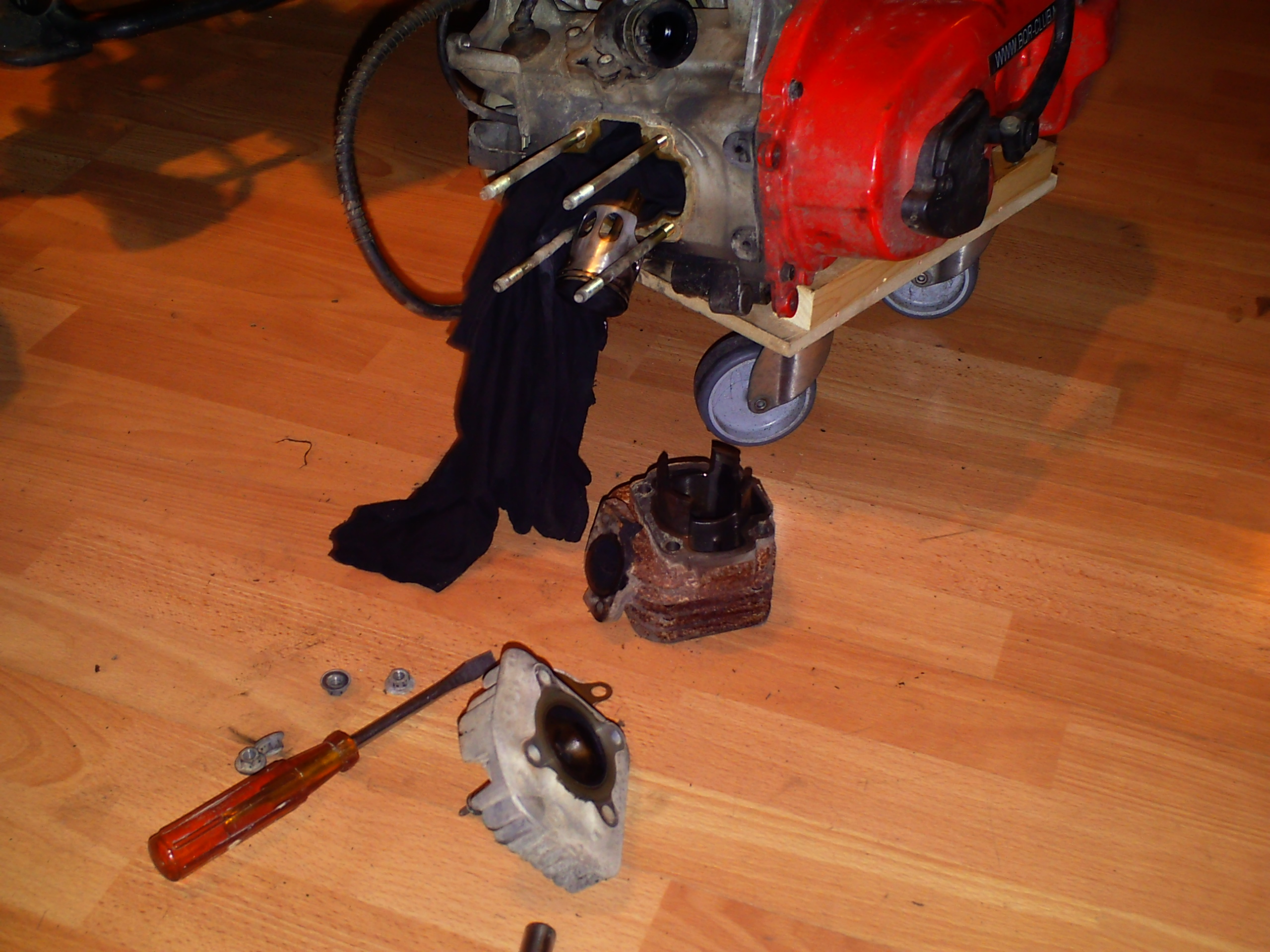 zo nu de kop en de cilinder verwijdert is kunnen we beginnen aan het demonteren van de oude zuiger