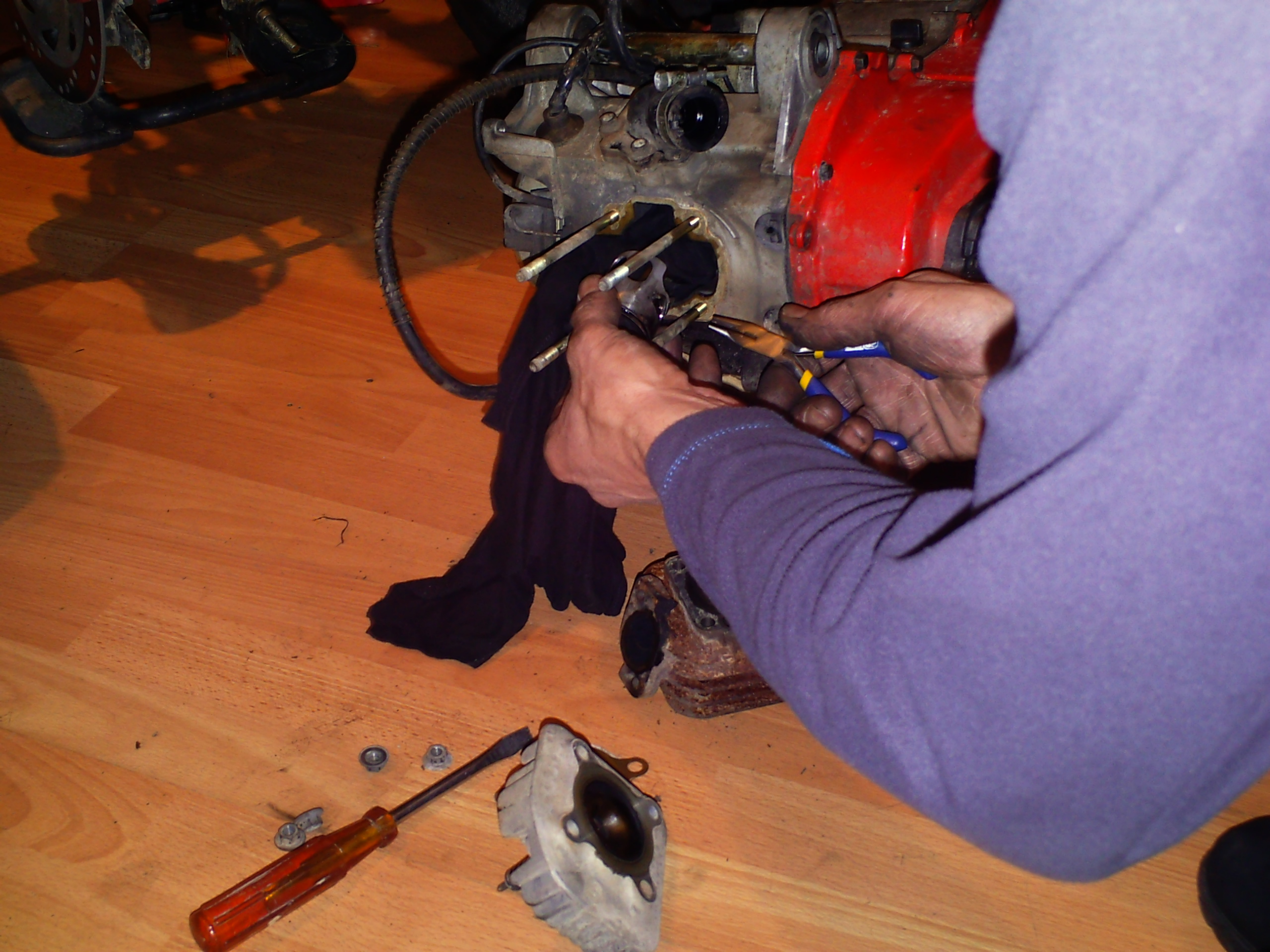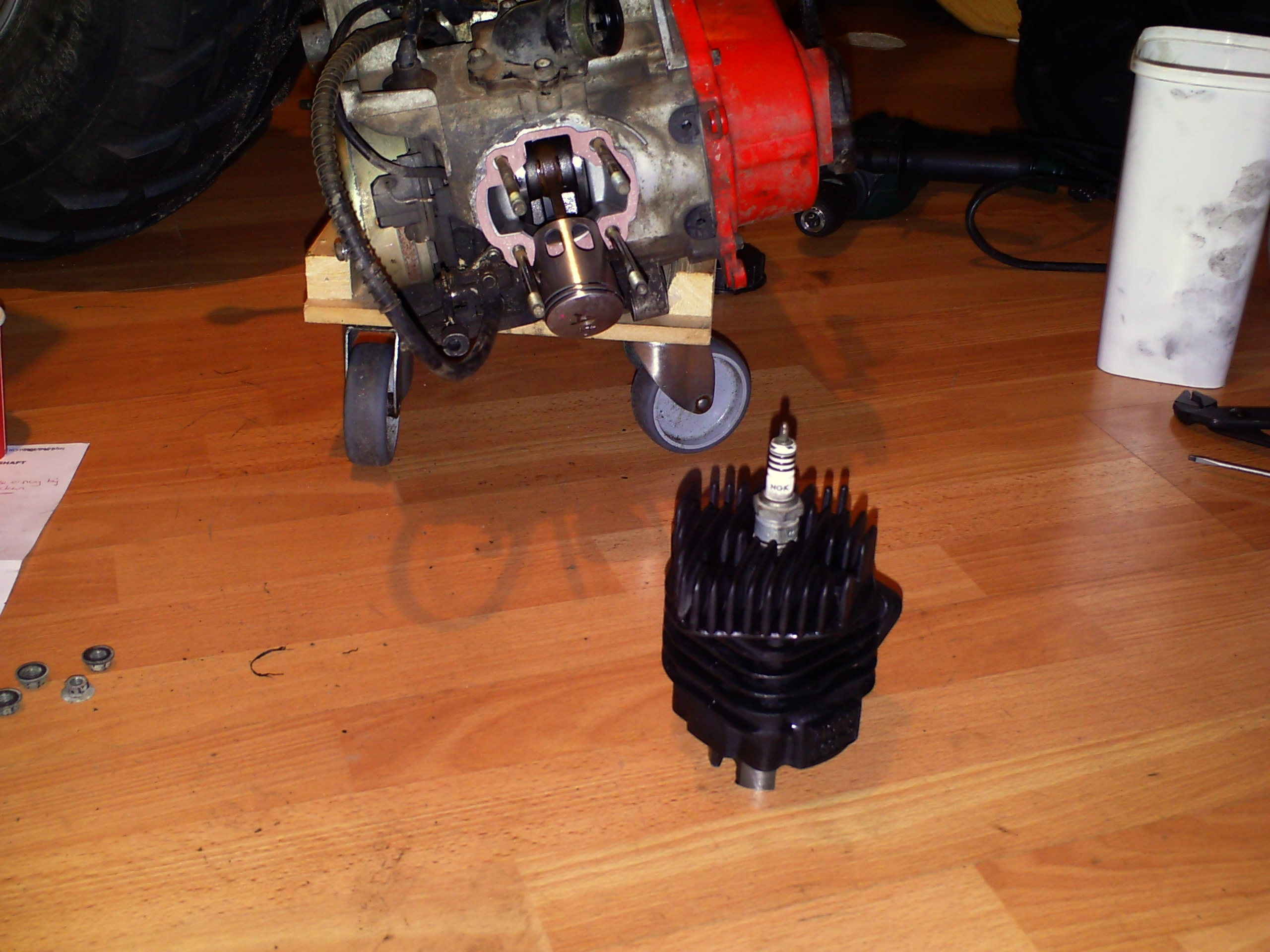 na een kleine 30 minuten lag het motor blokje netjes naast de quad