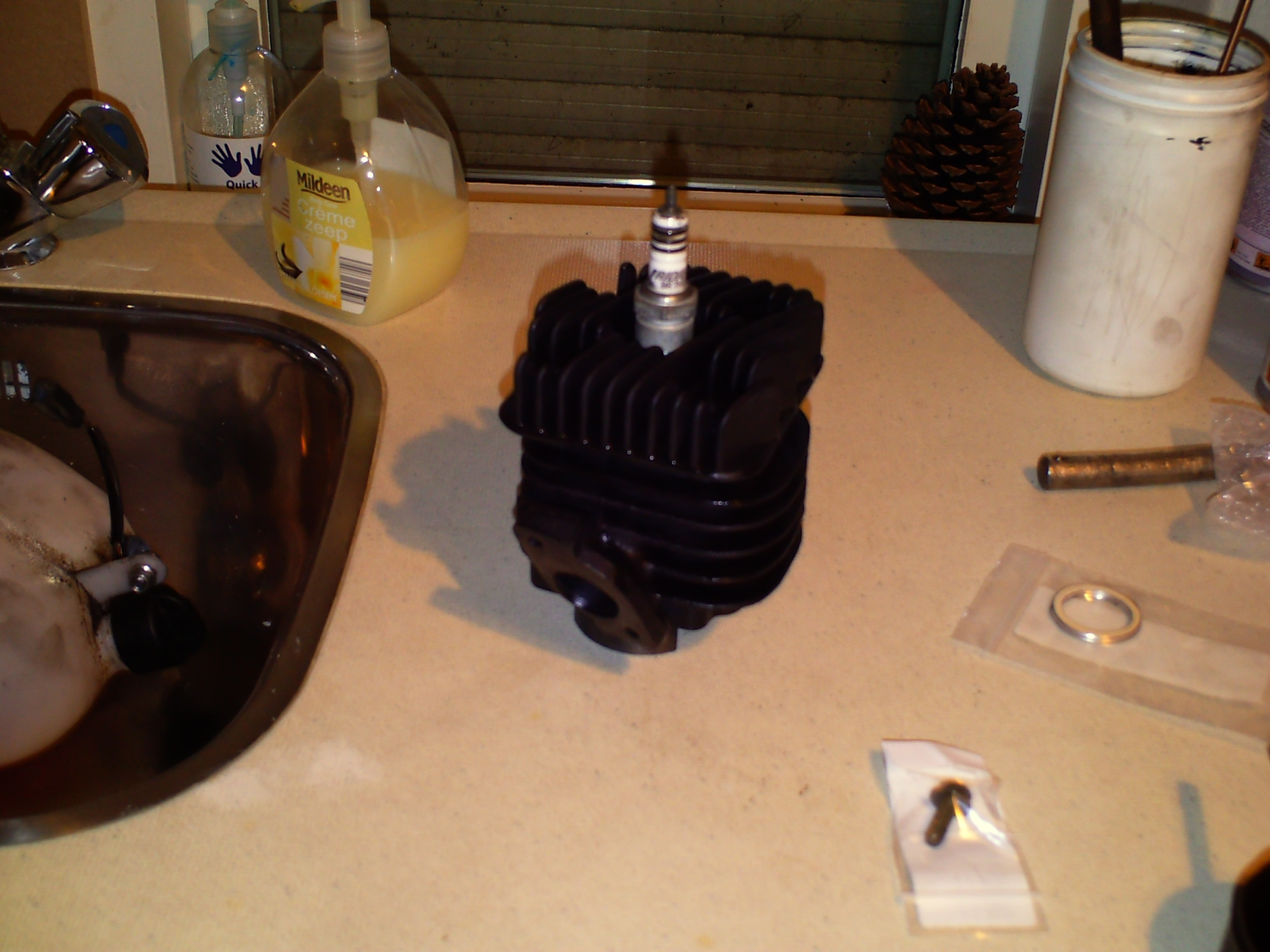 nu de nieuwe zuiger weer op zen vertrouwde plekje zit kunnen we de kop en cilinder weer plaatsen
