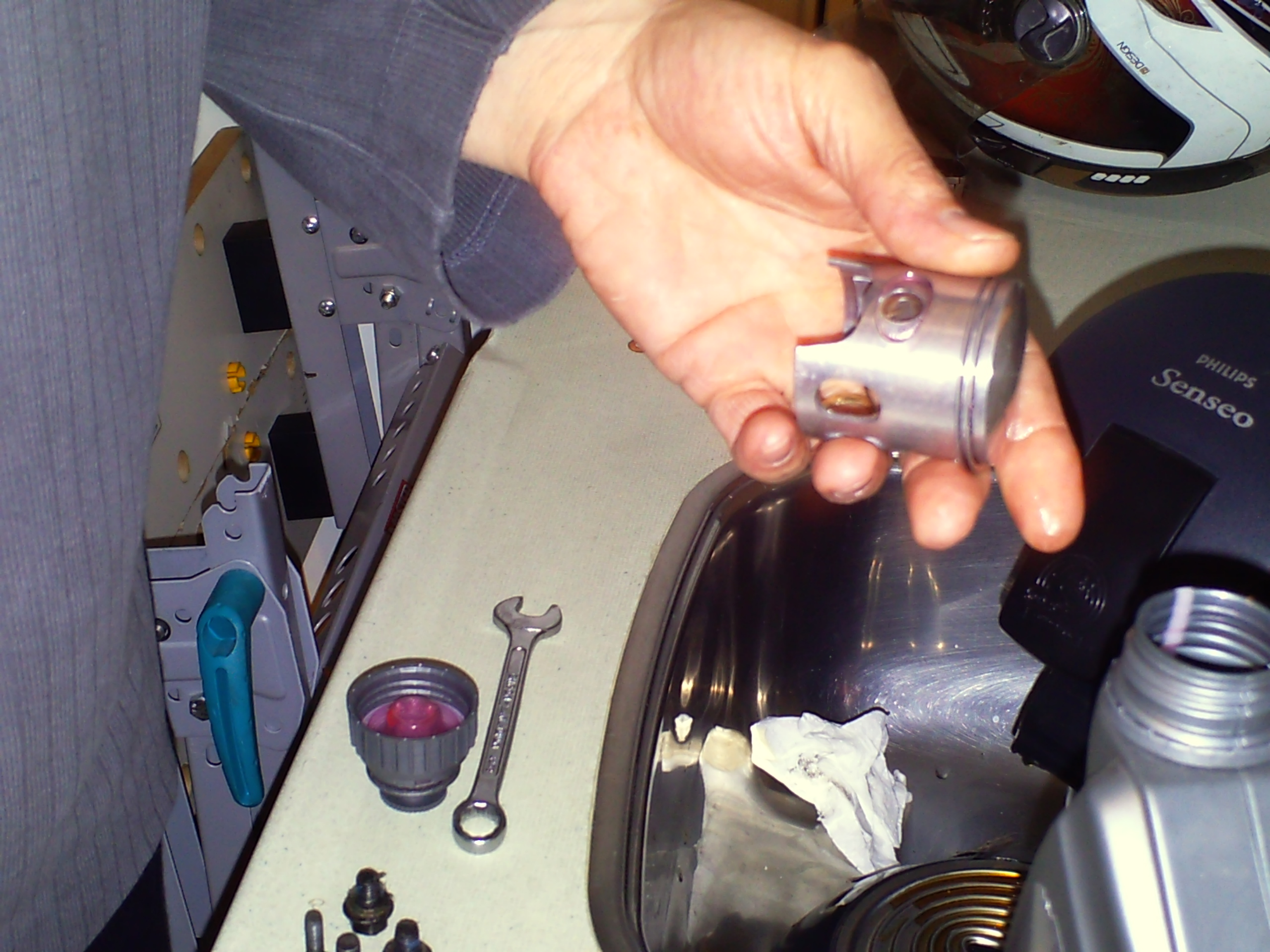 zo nu de kop en de cilinder verwijdert is kunnen we beginnen aan het demonteren van de oude zuiger