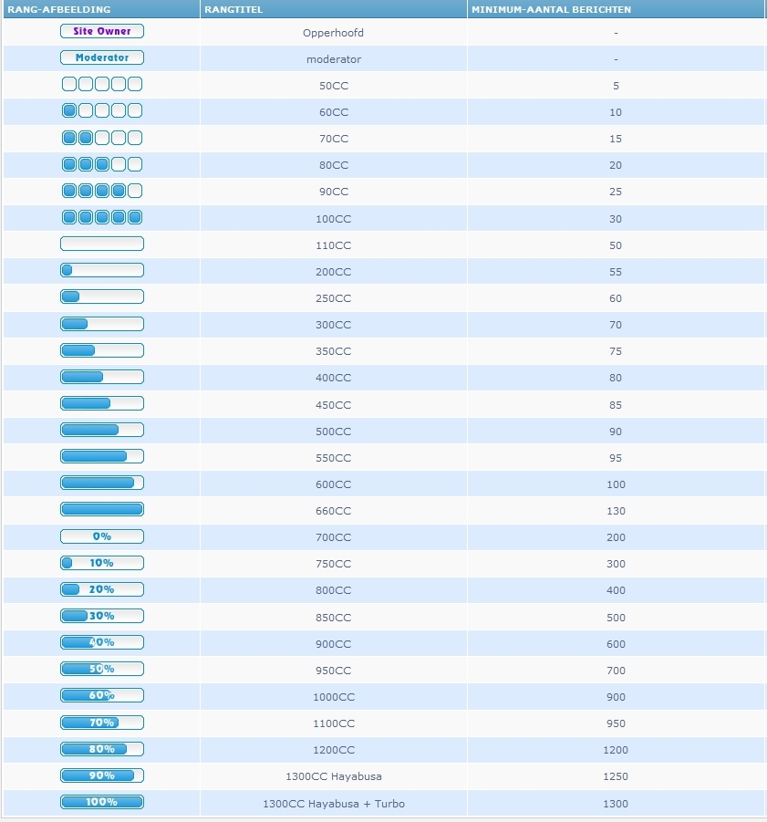 Ik heb de afgelopen 2 dagen aan nieuwe rangen gewerkt zie hier onder. Klik op de afbeelding voor vergroting