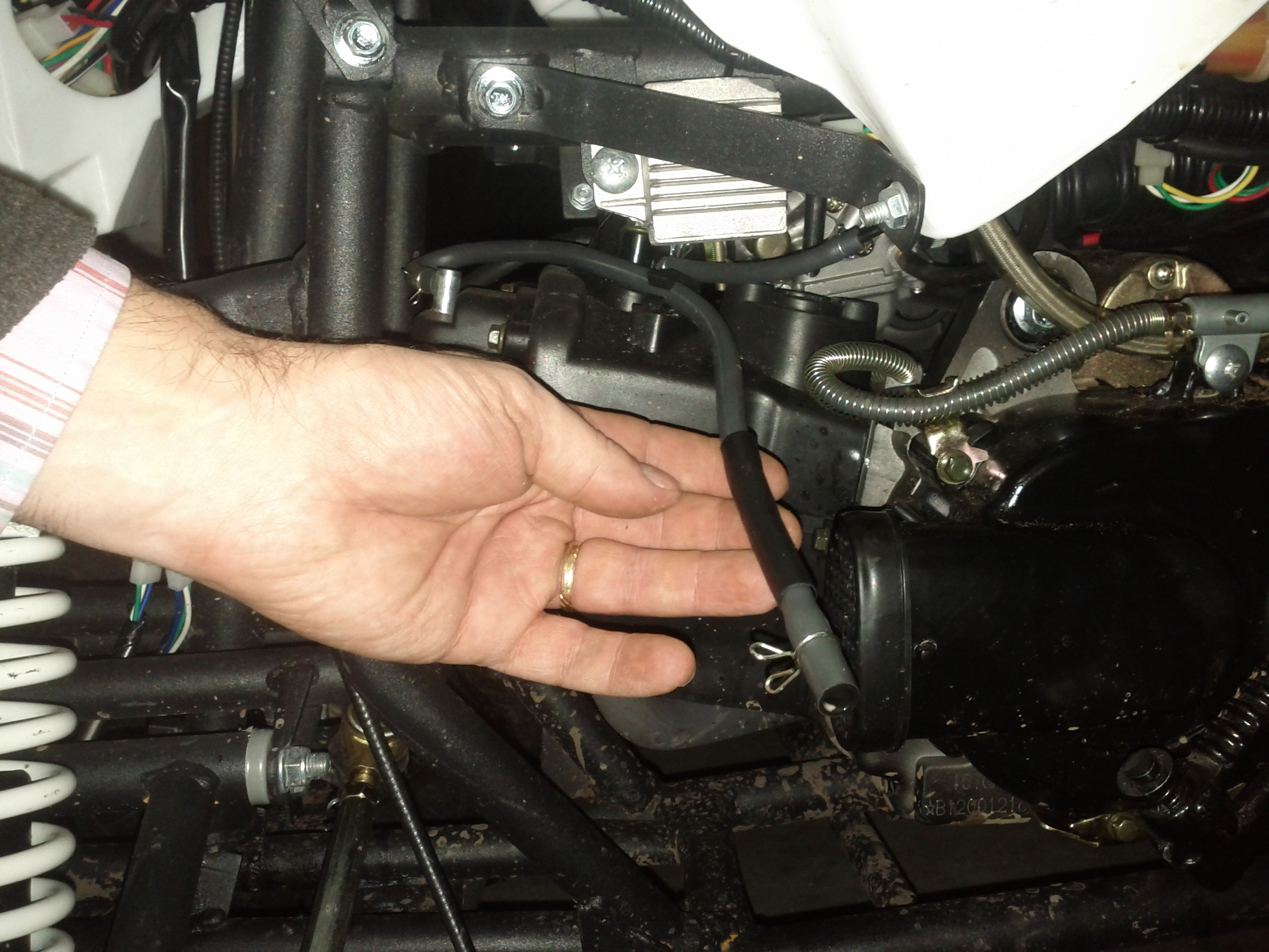 Het probleem is dat er onlangs een slangetje los hangt te bengelen aan de linkerkant van de motor